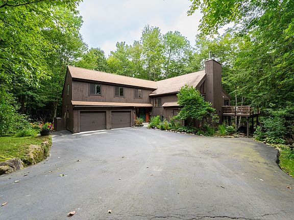 Privately located near the end of the road, yet super convenient to the main Entrance to Eastman and within walking distance to the golf course and the lake is a quick 10 min walk. The Eastman Brook runs along the back of the property. This home has been beautifully updated with great kitchen with granite counters and stainless appliances. The cathedral living room is wonderfully spacious and features a wood burning fireplace. The enclosed porch/sunroom is just a great space to enjoy a cup of coffee while listening to the babbling brook and there is a spacious deck as well. The primary bedroom suite is incredibly spacious with a beautiful update bath and two walk-in closets. There is another bath and first floor bedroom. The lower level opens to the family/rec room with a wood stove to enjoy those cold winter nights. There are two more bedrooms along with a full bath and a full walk-out to the deck and patio. There is a private back yard area as well. Come enjoy all that Eastman has to offer! Great as a full time home or vacation getaway. Offers due by 5p Monday, 8/28/23.