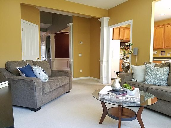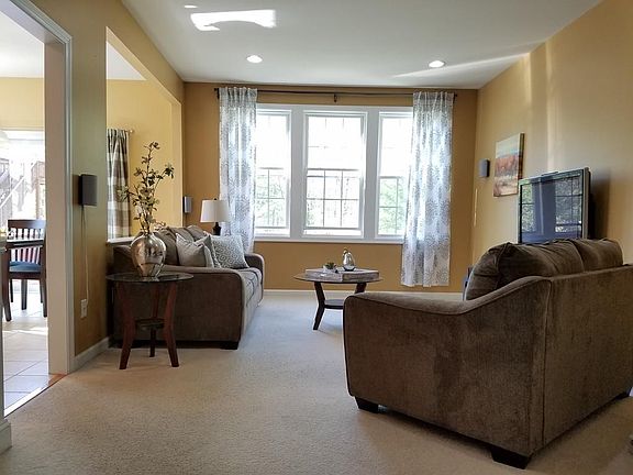 This spacious end unit condo has a desirable location with a big side and back yard and nice wooded views from the deck. Step into the open foyer with gleaming hardwood floors that flow into the large formal dining room. The living room has large windows overlooking the back yard and a large pass through to the eat-in kitchen with nice upgraded maple cabinets. Enter through the double doors into the master suite with a walk-in closet and a luxurious master bath with soaking tub and double vanity. Two more bedrooms, a full bath, and a laundry room round out the 2nd floor. The large basement is great for storage or have it finished for more living space! Brand new hot water heater.