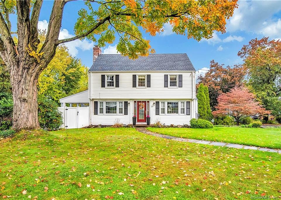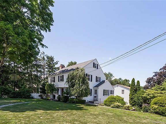 Welcome to this charming center hall colonial situated away from the road on the corner of Tunxis Road & Cornell Road. Enter thru an elegant foyer into a bright & airy home that features 3 bedrooms, 2.5 baths & 2 car attached garage. Formal living room & dining rooms flank the center hall of this appealing home. The dining room opens to an updated eat-in kitchen with granite countertops & stainless-steel appliances. Enjoy relaxing in the spacious front to back living room with its wood-burning fireplace & french doors that open onto a private backyard oasis perfect for outside relaxation and entertaining. A private veranda & deck overlook a professionally landscaped yard with an in-ground heated pool & new fencing surrounding the entire property. The main floor also boasts an updated half bath & office. Upstairs you will find the primary bedroom complete with a full bath & walk-in closets, two other bedrooms both with ample closet space, & another full bath. There is also walk-up access to the attic which can be used for storage or possible additional living space. Located in the lower level is your laundry, additional storage space & walk-out to your fenced in backyard. Additional features: hardwood floors throughout; living room, dining room, hallway, all freshly painted & having new lighting & custom drapes; new garage doors 2020; new fencing around entire property 2021; new in-ground pool liner & equipment except heater 2021; outside shower; in-ground sprinkler system