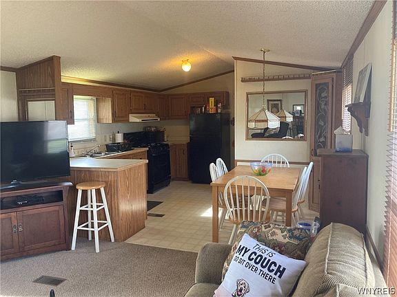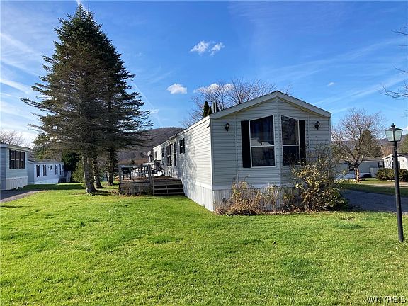 Great location!! This well maintained 3 bedroom ,2 full bathroom home sits on a corner lot at the top of the park. The layout is great with the master suite is on one side of the home, and 2 additional bedrooms and full bath on the other side. The open kitchen, dining, and family room have tons of windows that bring in lots of natural light. Enjoy sitting by the wood burning fireplace on a cold winters night, or soaking up the sunshine as you relax on your deck during a warm summers day. The entry way has washer/dryer hook up and room to store your belongings. This home comes fully furnished including everything from furniture, appliances and TV's, to kitchen utensils (Fitness Bike and personal items excluded). Inexpensive living (lot rent is only $290 a month and includes water, sewer, and garbage). NO TAXES! Great location, only 5 minutes to Ellicottville, and 10 minute to Allegheny State Park and the Casino. Stress-free living in a highly reputable well managed park! This is truly a Turn-Key sale. All you need is your personal belongings. Make this your permanent home, or purchase as your ski home just in time for the ski season!