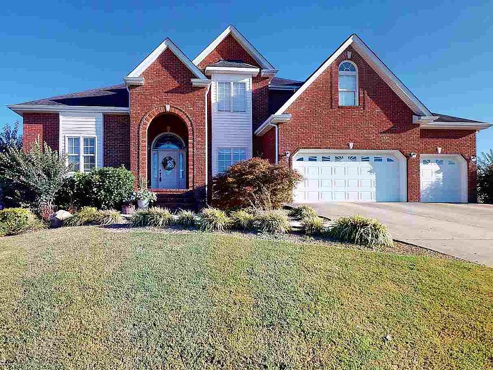 Immaculately maintained traditional two story brick for the discerning buyer. Main level comprises a stunning 20' ceiling entry, attractive lighting and beautiful palladium window. Large formal dining with 9' tray ceiling, chair rail and wainscoting. Inviting great room boasts 20' ceiling and another palladium window highlighting the mountain views. Well-appointed kitchen with Corian counter tops, cherry cabinets, island with Jenn-air cooktop, wall oven, microwave, and informal eating area. Kitchen is open to family room with gas log fireplace. Access back patio and fenced yard from kitchen. Escape to the sought-after master suite by entering through exquisite etched glass French doors. Expansive bedroom with 9' tray ceiling and large private sitting area or study. Bath offers everything you desire with double sink vanity, jetted tub, tiled shower with glass enclosure, toilet room and huge walk-in closet with built-ins. There is a half bath on main level for guests, large laundry with utility sink and cabinetry and 3 car garage. Second level includes 3 spacious bedrooms with abundant closet space, 2 full baths and reading nook. Hardwood and ceramic tile floors on main and second level, crown molding and recessed lighting throughout. Basement features rec room and media area with 110'' ''theater style'' perforated screen, built in 7.1 sound, Denon receiver, Klipsch speakers & sub, large office with closet, full bath with tiled walk-in shower and service garage. Exterior finishing touches include pleasing landscaping, double concrete driveways and brick pillars at entrance. There are three heat pumps/furnaces with digital programmable controls. Buyer and/or Buyers agent to verify all information.