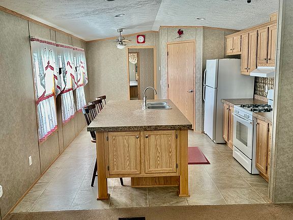 Well maintained mobile home in popular mobile home park. This 3 bedroom, 2 bath home features a large kitchen island, a whirlpool tub, large closet in the primary bath, heat pump, shed and large covered porch. The heat pump and natural gas furnace are efficient sources of heat and air conditioning. Any buyer will need to be approved by the park. Current lot rental is $375 per month. Also see MLS 1557102
