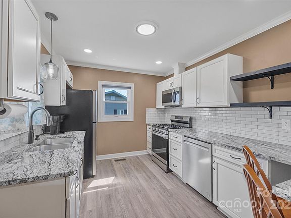 Step inside and you're greeted by a warm, inviting living room that flows effortlessly into a fully renovated kitchen featuring granite countertops, upgraded cabinetry, stainless steel appliances, and a sleek subway tile backsplash that stands the test of time. The gas range offers efficient and speedy cooking - roast the freshly grown veggies from the established garden in no time!