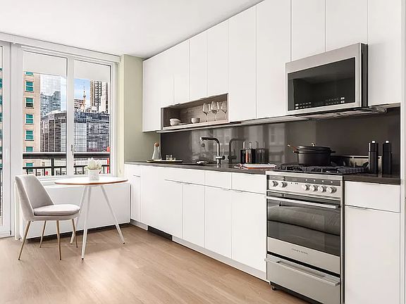 Located in the bustling neighborhood of Midtown West right in between Bryant Park and Herald Square. Just a few blocks away from the 1, 2, 3, 7, B, D, F, M, N, Q, R, Q, W, and S subway lines along with the PATH and the LIRR. Next to your new home is a shoppers paradise which includes the Whole Foods, Target, Macys flagship location, and numerous other retail delights. Just a short distance away is one of NYCs highlights, Bryant Park