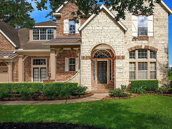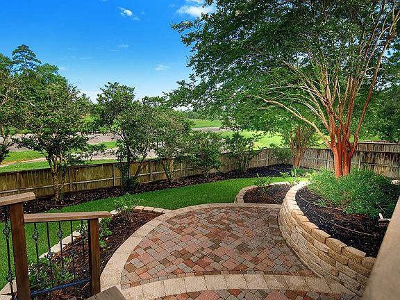 Located on a 3rd acre culdesac greenbelt homesite, this homes provides privacy and quiet. David Weekley "Collette" floorplan with a unique layout including French doors to a front pavered patio directly from the Sunroom, formal dining and study with built-ins, large user friendly kitchen open to family room with outstanding views of the lovely back yard. Double Stairs cases also makes this a wonderful family home and perfect for entertaining. Sit on the large rear multi-leveled deck with built in spa to enjoy all that nature provides including a slate tiled firepit area. Large gameroom up with secondary bedrooms makes it excessively family friendly. Abundant storage, numerous designer builtins, Hardwood and tile flooring downstairs and carpet up, master suite with great views plus a master closet with builtin shelving and basket storage.