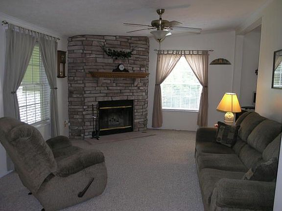 Absolutely gorgeous setting on almost an acres w/ 3BR, 2 Bath, sunroom. Inviting huge covered country front porch. Huge FR w/ woodburning stone f/p. If purchased by Nov. 1 the 57" widescreen Sony HDTV & home theatre system (Pioneer received, Sony DVD player & 5 surround speakers) can be included. Oversized 2 car garage can accomodate 3 cars w/ 220 service. Full bsmnt except under sunroom. Roof replaced in 2006, washer & dryer 2004. Luxury master bath w/ whirlpool tub. Seller will pay $500 in closing costs.