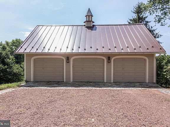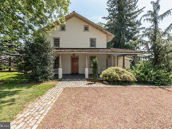 New price! Meander in the winding driveway to this classic Chester County farmhouse in a lovely setting of mature trees, shrubs and perennials. The house is a perfect blend of historic charm and modern conveniences. The original section was built in 1803, and the house was doubled in size in 1900. The property features a 3 car banked garage built in 1992 with maintenance free roof, and stairs to ample second floor storage. The workshop/studio beneath the garage has heat and a powder room, appealing to any craft person/artist or buyer desiring an at home office. There is also a detached one car garage/shed. Entering the house through the wrap around porch, you'll note the original white oak floors, deep window sills, exposed stone walls, and the cozy family room addition with built-in cupboards and shelves, vaulted exposed pine ceiling, and copper roof. The kitchen/dining room combination works well for today's casual lifestyle. The kitchen features custom figured cherry cabinetry, granite countertops, bar area with sink, and efficient Hampton enamel woodstove. Walking toward the back door you'll find a huge walk in pantry, coat closet, and powder room/laundry. Upstairs, the master bedroom has a walk in closet and full ensuite , and there are 2 additional bedrooms and full bath on the second floor. Third floor has 2 large rooms and a full bath. Please see the on-line floor plan. See on-line plot plan. Added bonuses are a new septic system installed January 2020, a whole house generator and a new whole house April Aire dehumidifier. Close to Marsh Creek, and an easy commute to the PA turnpike and Rts 100 or 322. Low taxes and the Downingtown School District with its national award winning STEM Academy add to the appeal of this wonderful property. NOTE: Adjoining pasture is under conservation easement so cannot be built on. Views will not change. 2 acre lot to right of driveway has been sold and buyers will build a Craftsman style home construction starting in spring 2020.