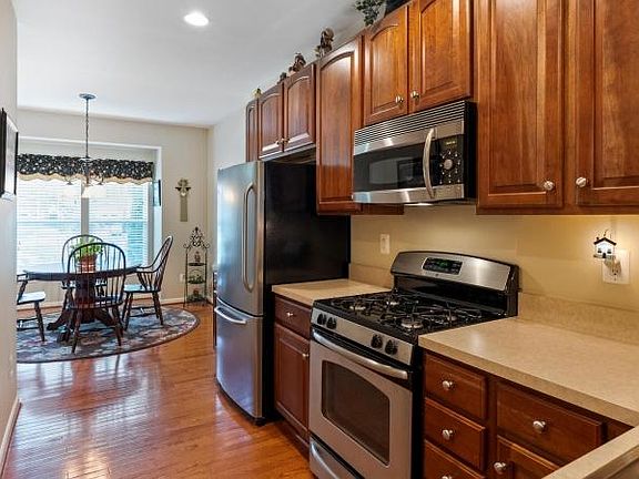 DESIRABLE 55+ HEARTHSTONE COMMUNITY with pool, tennis courts and a club house; convenient, easy living in this 3 BR, 2 full, 2 half baths townhome with a full finished basement and attached garage backing to the woods; the open floor plan features a beautiful, eat-in kitchen, LR/DR combination with a gas fireplace and door to the backyard patio; the master suite with a walk-in closet and laundry complete the first floor; hardwood floors LR/DR, kitchen & foyer; the second floor offers 2 bedrooms, a full bath, a loft area and large walk-in storage area and attic access. An amazing finished basement with a powder room provides additional living space;
