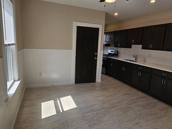 Featuring a large, updated kitchen. The kitchen boasts brand-new cabinets, sleek countertops, and modern appliances, making meal prep a breeze.
