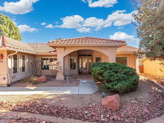 A masterpiece of Sedona living, this exquisite Neil Klein home in the Village of Oak Creek offers elegance, comfort, and breathtaking red rock views. Just moments from renowned 18 hole Gulf Course, Oak Creek Country Club. Enjoy cathedral ceilings, gas fireplace, and an open, well lit floor plan. The chef's kitchen features abundant storage and flows seamlessly into the living and dining areas—perfect for entertaining. Retreat to the expansive main suite, while two guest bedrooms provide comfort and privacy on the other side of the home. Rare 3-car garage offers ample space for cars, golf cart, and storage. Step outside to your serene covered patio and beautifully landscaped yard—your private oasis in one of Sedona's most coveted locations.