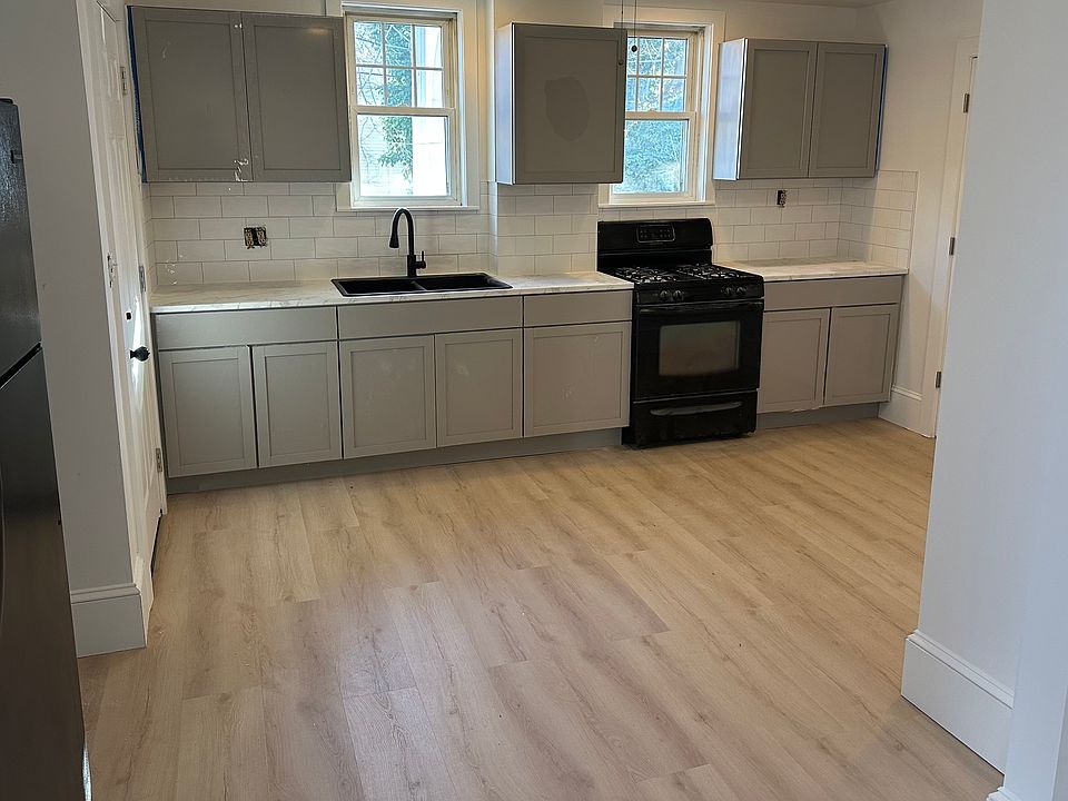 Completely renovated and bright first floor apartment in New Bedford's West End. Close to downtown area dining and shopping and the commuter rail. Apartment features two large bedrooms, some original historic features such as crown molding, an aesthetic fireplace (non-operable), and a stain glass window. Gas stove. Fenced in back yard. Owner pays for water. Renter is responsible for gas and electric. Max of two pets allowed. Lease is month to month.