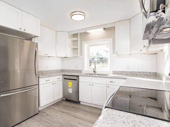 New Everything, no surface left untouched - ready to move in! White shaker kitchen has granite counters and stainless appliances. Fresh, neutral paint colors will match all your décor. Modern light fixtures and craftsman trim add character and style. Attractive LTV flooring in main living areas is extra durable and 100% waterproof for easy cleaning. New carpet in bedrooms is cozy underfoot. Large bathroom is beautifully remodeled with tasteful colors and fixtures. This house sits on a ½ acre of flat land. The covered front porch offers a shady spot for relaxing, and the side patio is a perfect place for BBQs. Newer roof, windows and vinyl siding mean low upkeep for years to come. This adorable house is fresh and ready for new owners.