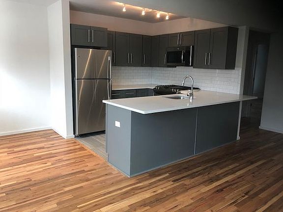 Come and check out this brand new garden style 1000 sq ft 2 br 1 bth apartment! Features gourmet eat-in-kitchen- granite countertops, high end cabinetry, stainless steel appliances-breakfast bar that opens into sunfilled living room/dining room, gleaming hardwood floors throughout, laundry inside unit, central a/c, parking, and pets are ok.