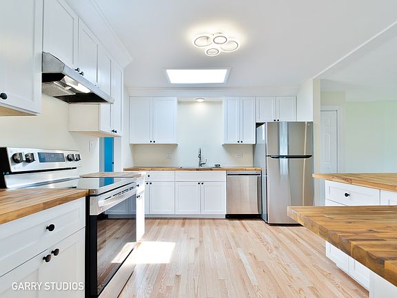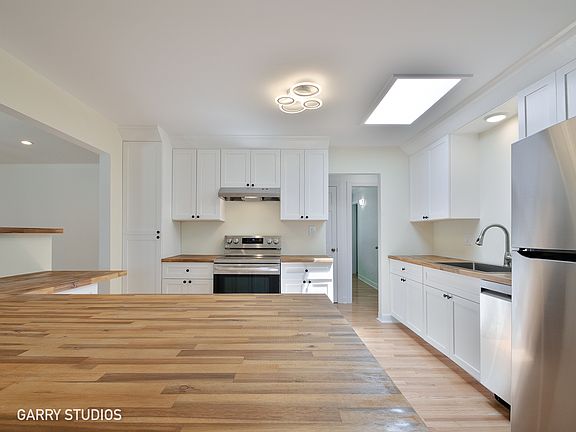 Move in ready beautifully updated ranch home in sought after Elk Grove Village ~ Enjoy stair free living! This home features 3 bedrooms, 2 full bathrooms, bonus family room with cozy fireplace and 1 car garage. Brand new kitchen complete with new stainless steel appliances, skylight, breakfast bar, butcher block countertops and single basin sink. Living room features beautiful french doors that open up to back patio. Other features include: Hardwood floors throughout, fresh coat of paint in 2 bedrooms, updated bathrooms, updated fixtures, recessed LED lighting, newer windows (2019), newer furnace (2016). Great location near Busse woods, parks, shopping, dining. Easy access to major highways. Excellent schools.