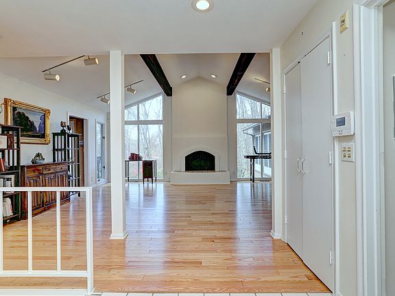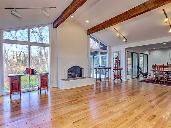 - Features: Cathedral Ceiling(s), Beamed Ceilings, Fireplace, Hardwood Floor