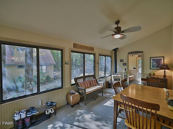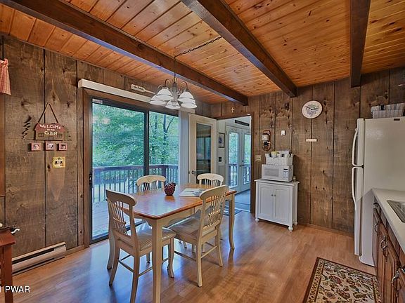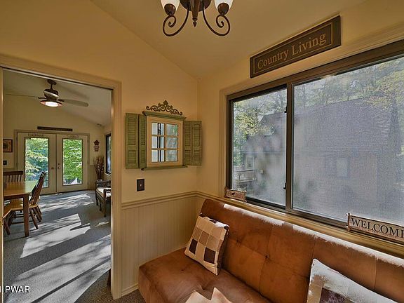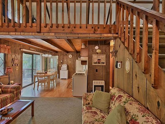 This stylish home reflects a space that is filled with character and comes turnkey, ready to provide you with the sanctuary you are longing for.... Situated on a wooded lot and featuring 2 bedrooms and 2 baths, this chalet comes fully furnished. Featuring an addition that is currently a dining room and an entry that doubles as an extra sleeping room, it also has an open concept eat in kitchen/living area. Upper level is a game room with extra sleeping space. Don't forget the outdoor fire pit and large utility shed for extra storage. A large deck gives you extra space to enjoy the quiet beauty of the Hideout, a premier private community with it's loads of amenities, including a nine hole golf course, two heated pools, two sandy beaches, a ski hill, and multiple restaurants, woodwoorking shop, art center, playgrounds and tennis courts. All within a commutable distance to NYC or Philly metro areas, you can make this your weekend or seasonal getaway ( or you may just never want to leave).