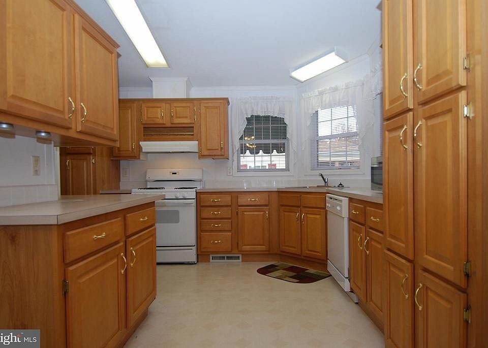 North East model offers 2 large BRS/2 baths & spacious utility room. L shaped kitchen has a morning room with 3 windows for lots of light on one end & DR on the other leg. Spacious Living room & master bath features a large walk-in shower. Deck offers lots of seating area-Lovely Club House! Buyer must obtain park approval with Cecil Woods- $463. Monthly Lot Rent