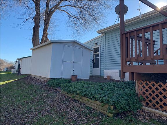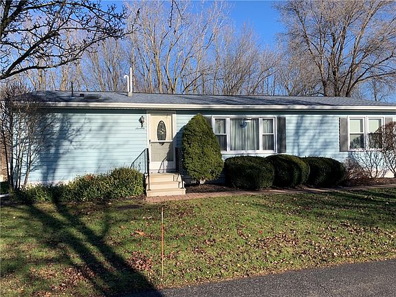 Move right in to this spacious 2 bedroom, 2 full bath Mobile home. All major updates have been taken care of. Front steps, windows, shutters and hot water tank all replaced in 2019. New roof and skylights in 2015. New furnace and central AC in 2014. One car attached garage has automatic overhead garage door and easy access to the shed and backyard. From the dining room you can access the Beautiful wooden deck overlooking the wooded lot. This is a 55+ community with HOA monthly fee of $475 which covers lawn maintenance, snow plowing of main roads, cable, internet service, water and trash.