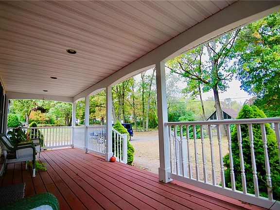 This large 3 bed, 2.5 bath Colonial features great space inside and out! The front of this home boasts a 9' wide farmer's porch which provides a great outdoor space for relaxing and gathering with friends. Upstairs a large master suite with bath will easily accommodate a king size bed and bedroom set. Spacious interior offers kitchen that opens into dining room. A generous living room with slider door flows to expansive 41x16 deck with views of wooded backyard that abuts Westerly Land Trust. Close to Route 95 and all the amenities in Dunn's Corners.