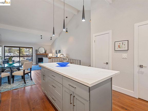 Fresh and totally renovated (work completed in March '21) top-floor residence, set on two stories. Upstairs is an open floor plan including the kitchen, dining area, living room and half-bathroom, with a lovely fireplace and hardwood floors throughout. Downstairs are two large bedrooms (one with an en-suite bathroom), in-home laundry and ample storage space. This home has never-used appliances (installed in 2021), quartz kitchen countertops, fresh cabinetry, bathroom fixtures. Even the walls and ceilings were refinished. Both levels of the home have a balcony that opens out to sweeping scenic vistas of the East Bay hills. Half a block away is Piedmont Avenue with its many shops, restaurants and services. You'll find access to commute options and the highway 580 on-ramp just a few blocks further. Kaiser Hospital and medical buildings are also within a few blocks. "Centrally located" doesn't get more central than this, yet this home is peaceful, set off the street - a wonderful retreat.