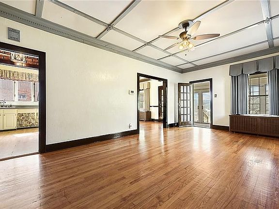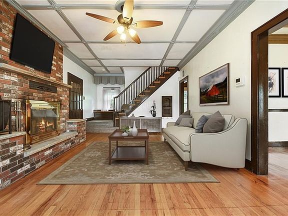 JUST GORGEOUS! Historic beauty abounds in this Gordon Van Tine "Hudson" model home! Prepare to fall in love with the original hand-hewed wood work, crystal door knobs, beautiful glass faced built ins, hardwood floors, crown molding, & intricate coffered ceilings! The living room features a cozy wood burning fireplace & is open to the kitchen, dining room & sunroom which couldn't be more perfect for entertaining family & friends! The sunroom features large sliding glass doors which open to a huge deck overlooking all of Elizabeth with views of the rolling hills across the river! It is the perfect spot to see the 4th of July fireworks & to take in the gorgeous fall colors! Upstairs features 3 spacious bedrooms, an original built in linen closet, a full bathroom, hardwood floors under carpeting, & the home feature you didn't know you needed- A LAUNDRY CHUTE! Super convenient location only minutes to RT 51, RT 43, RT 88, grocery stores, & endless shopping and dining options!