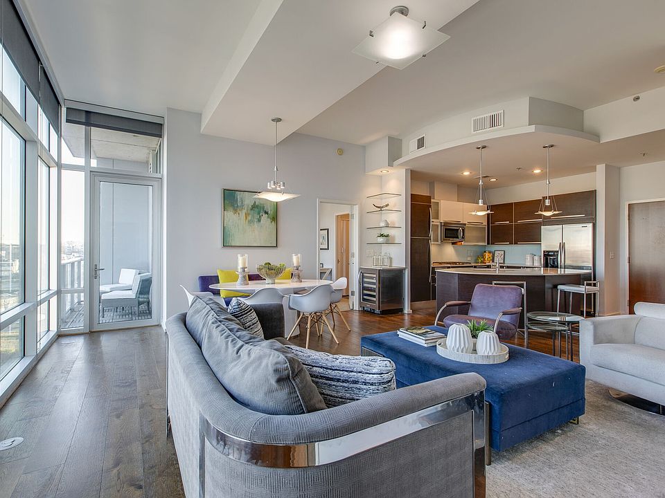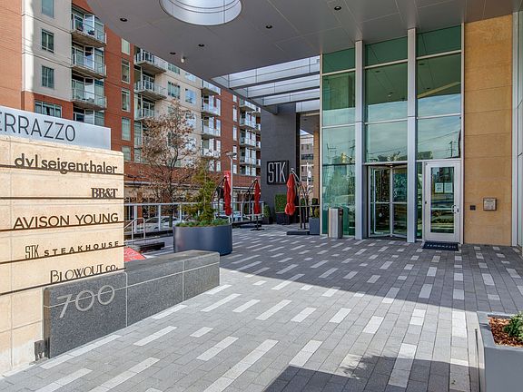 Exclusive urban living in the Terrazzo! 11-foot finished ceilings*24/7 concierge service* Floor-to-ceiling windows*Brand-new, wide plank wood flooring* Cook's kitchen w/gas range and wine fridge* 3 walk-in closets, high-end finishes including 7 foot tall doors* Covered balcony* Gorgeous pool & owners' lounge* Fully outfitted fitness center with professional upgraded equipment* 2 assigned garage parking spaces convey*LEED-certified built building is great on utility bills!*