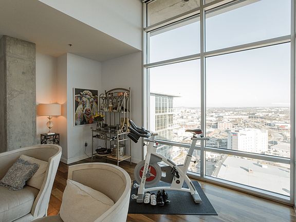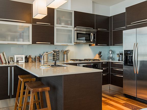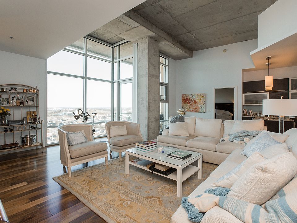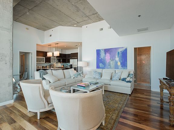 PENTHOUSE LEVEL W/NATURAL WALNUT FLOORS THROUGHOUT. 14' FLOOR-TO-CEILING WINDOWS PROVIDE BEAUTIFUL VIEWS. KITCHEN HAS ITALIAN WOOD W/ GLASS FRONT CABINETS. APPLIANCES REMAIN INCLUDING W/D. 1 ASSIGNED PARKING SPACE.