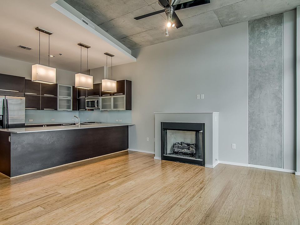 Impressive 1 bed/1bath Gulch condo with additional den/office. Nashville's first LEED certified building, 1 assigned parking space, 24/7 concierge service, upgraded bamboo floors, quartz countertops, 12ft ceilings, floor to ceiling windows, window shades, gas fireplace, stainless steel appliances, gas cooktop, balcony, walk-in closet, all appliances including W/D remain, newly renovated fitness center & club lounge with coffee bar, 6th floor pool deck, dog park & more.