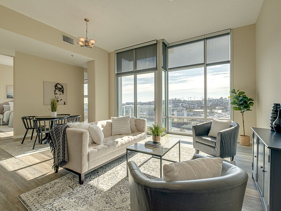This Spacious and bright Terrazzo unit features floor-to-ceiling windows, an open floor plan for entertaining with warm European cabinetry and flooring. Seller has approved plans to add a half bath to the unit. Amenities include 24 concierge service, secure access to residential areas, including parking, a swimming pool with beautiful sunset views, an outdoor kitchen on the pool deck, cardio room, weight room, club house and conference room. The building features the famous STK restaurant right in the lobby & is in the heart of The Gulch, Nashville's most walkable neighborhood. Steps from your front door are award-winning restaurants, rooftop patios, bars, coffee, boutiques, & more - mins to Broadway & Airport. THE BEST DEAL IN THE GULCH! Great Investment in a booming area,
