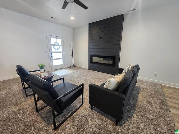 Experience the good life in this beautifully designed twin home by J Schenzel Construction. It features a spacious open concept living area with a shiplap wall with electric fireplace as a focal point in the living room. The kitchen features custom, soft close cabinets with ample amounts of storage. You'll love the primary suite with a walk -in tiled shower and lots of closet space. The second bedroom is perfect for a guest suite or office. The garage is fully insulated, finished and painted white. No worries with your yard as it will be complete with sod and an irrigation system. A stone privacy wall between the front entry way ensures total privacy for both residences.