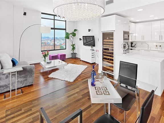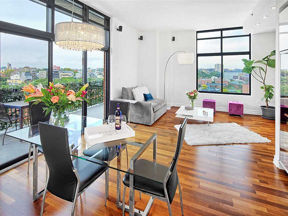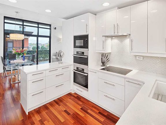 No detail was overlooked in this entirely renovated one of a kind 2 BR/2BA penthouse. This 1,143 sq. ft. penthouse located in Hobokenâs best downtown full-service, elevator building. You will enjoy a modern kitchen with Miele appliances, white cabinetry, quartz countertops, glass backsplash, massive wine refrigerator, Steam Oven, country sink and more. Both ensuite bedrooms offer walk in California closets and tons of extra storage with beautifully renovated bathrooms. Let us not forget the details that complete this fabulous space, Nest climate control, Bose speakers throughout, Central air and in-home laundry. Partial New York City views and 10 ft ceilings. Enjoy the access to your 243 sq. ft. balcony from both the living room and bedroom. The building comprises of a 24-hr. concierge, shuttle to/from the PATH, and a brief two-minute walk to the light rail. Public Parking Garage & 25,000 sf health club with Olympic pool offered for add fee. Steps away from light rail, parks, schools and onsite restaurant/bar and grocery store. Come to the Sky Club and enjoy wonderful community and all it has to offer.