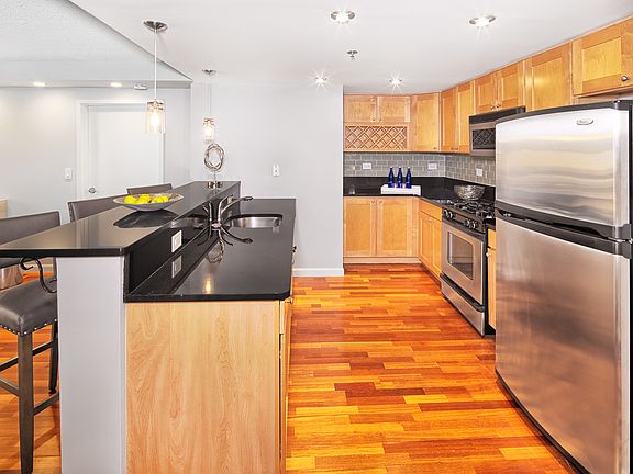 Enjoy this terrific 1227 sq ft 2 Bedroom/2 Bathroom with private balcony located in Hobokenâs best downtown full-service, elevator building. Modern unit featuring chefâs kitchen w/ breakfast bar, pendant lighting, maple cabinetry and stainless-steel appliances. Spacious master bedroom with ensuite bathroom and walk in closet. 2nd Bedroom very large with California closets. This ideal floor plan has room for a dining table, has hardwood floors, central A/C, and washer/dryer in the unit. Building amenities include: full-time concierge, shuttle bus to/from Hoboken PATH. For additional fee garage parking and access to 25,000 sq. ft. gym/pool. Conveniently located 1 block from Light Rail and just steps away from the new Southwest Park. Onsite is Northern Soul Bar/Restaurant and just opened is The Whole Fresh Organic Market place. High rise living at an affordable price.