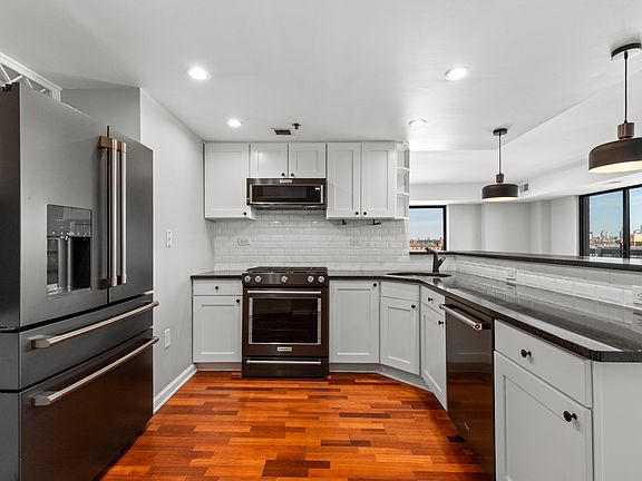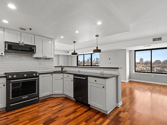 Modern kitchenPrivate terraceDual closetsCentral air and heatingStunning skyline viewsSleek finishesCorner unit