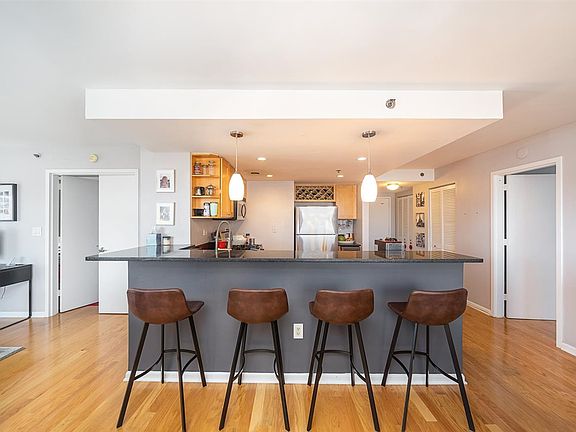 Take in stunning New York City views from this 2 Bed / 2 Bath corner unit at the prestigious Sky Club. Whether you're unwinding in the living and dining areas or enjoying your private balcony, the breathtaking skyline is always in sight. The kitchen boasts granite countertops, stainless steel appliances, a dishwasher, and a microwave. This unit also features hardwood floors throughout and an in-unit washer/dryer. The full-service building includes a 24-hour concierge, shuttle to/from the PATH, bike storage & garage parking for an additional fee. Conveniently located near bus and light rail services, grocery store, restaurants, gym, schools and more. experience exceptional living at The Sky Club.