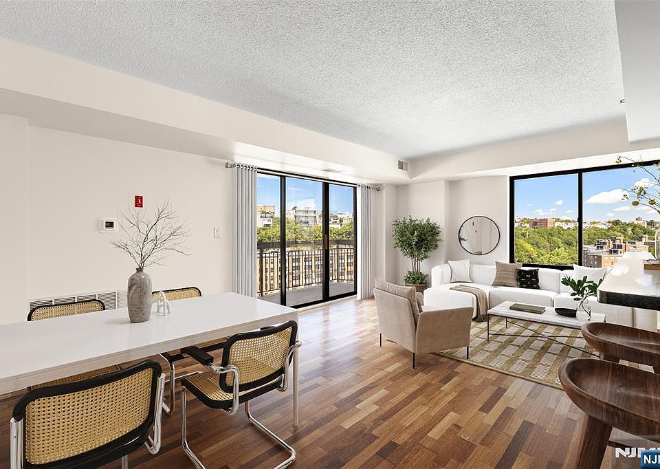 Located on the 12th floor of The Sky Club, a premier 17-story full-service doorman building in Hoboken, this stunning corner home offers 1,273 square feet of sun-drenched living space with partial Manhattan views. A rare three-bedroom condo offering in the sought-after southwest side of Hoboken, this residence features a thoughtfully designed layout with two full bathrooms, each with new vanities, and a private balcony. The expansive living room flows seamlessly into a gourmet open kitchen appointed with stainless steel Whirlpool appliances, a tiled backsplash, a wine rack, ample cabinetry, and a breakfast bar. Brazilian Cherry hardwood floors grace the main living areas, complemented by brand-new flooring in the bedrooms. Additional highlights include central heat and air conditioning, a new in-unit washer/dryer, and abundant closet space. The Sky Club provides an unparalleled lifestyle with a 24-hour doorman and concierge, commuter shuttle service to the Hoboken PATH, a 25,000-square-foot on-site health club with an Olympic-size indoor swimming pool, and the convenience of an on-site parking garage. Ideally located in Southwest Hoboken, the building is adjacent to Southwest Park and the 2nd Street Light Rail stop, and just minutes from the PATH, restaurants, and shopping.