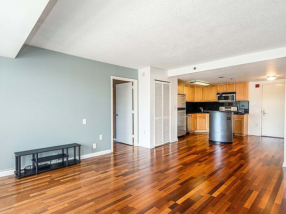 Welcome home to the Sky Club 24 hours concierge/elevator building. 2BR 2BA with balcony. Brazilian cherry hardwood flooring throughout living area and bedrooms. Open kitchen with full stainless appliances, breakfast counter. Plenty of closets & washer/dryer in the home. Amenities: elevator, 24 hrs concierge, shuttle to HOBOKEN PATH. Light Rail right behind Sky Club. Close to shops, restaurants, transportation. Additional fee: Sky Club Fitness & Spa with indoor pool & Parking available inquire through garage.
