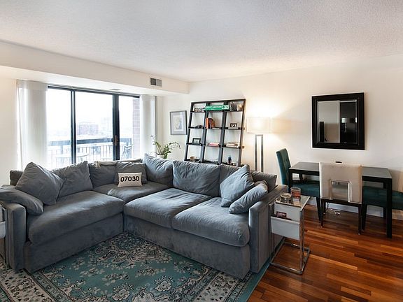 Welcome home to your new spacious 2b/2b in a luxury building with 24 hour concierge, renovated lobby and shuttle to the path. As you walk into your new home you are hit with direct natural light flowing in from the East Facing windows w/ picturesque views of New York City Skyline. Enjoy open living room & kitchen concept with SS Appliances, 4 stool breakfast bar w/ granite counters and dining area. Your new home has open entryway, large terrace off of the living room and two large bedrooms on opposite sides and central AC/heat. Master suite has renovated bathroom with dual sinks and walk in closet. Each room of unit has unobstructed East facing views of NYC. Fitness Club w/ indoor heated pool, sun deck and garage parking available on site. Located in the South West corner of Downtown Hoboken, with restaurant and light rail station right outside the door. New Southwest Park just 2 blocks away. Easy access to NYC tunnels, Rts 78/1&9/280/95. Gym and Parking are extra.