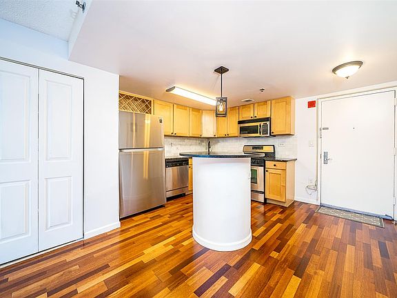 NO FEE - Lovely two bedrooms, two full baths at the Sky Club, luxury doorman elevator building. Home with Brazilian cherry hardwood flooring. Open living area with private balcony and kitchen with stainless steel appliances with granite counters and breakfast bar. Renovated modern baths. Plenty of closets & washer/dryer in the home. Amenities: elevator, 24 hours concierge, shuttle to HOBOKEN PATH. Light Rail right behind Sky Club. Close to shops, restaurants, transportation. Additional fee: Sky Club Fitness & Spa with indoor pool & Parking available inquire through garage. Pets considered