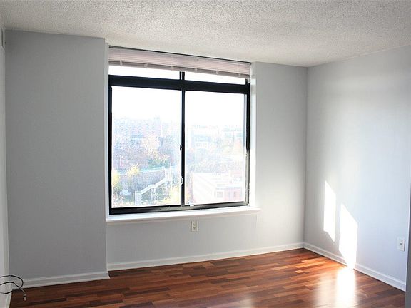 Beautiful 3 bedroom 2 bath corner unit w/ New York City views. Unit features, large open kitchen with breakfast bar, SS appliances and granite counter tops. Hardwood floors throughout. Nice size bedrooms. Large open living area with room for dining table. Private balcony off living area. This doorman building features, shuttle bus to/from Hoboken PATH station. Garage parking, Gym and indoor pool on-site and available to residents for additional fee!