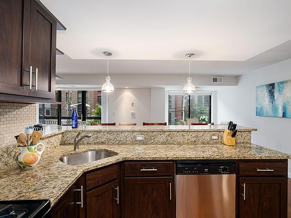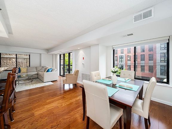 Enjoy coming home to this 1265 sq ft corner unit, 2 Bed / 2 Bath condo in the upscale Sky Club tower. The modern kitchen features stainless steel appliances, granite countertops with a large breakfast bar, and refurbished cabinets. A spacious living room, separate dining area, and upgraded hardwood floors create an inviting ambiance. Enjoy your private balcony for a sun-kissed morning retreat. The two bedrooms are on opposite sides of the home. Large primary bedroom w/ 2 closets and an updated ensuite bathroom. Central A/C and in-unit Washer and Dryer add convenience. The Sky Club provides 24hr Concierge, free shuttle to/from the Path, and bike storage. For an additional fee there is an attached public garage parking available. Close to light rail, Xcel gym, schools, parks, and restaurants. Experience the Sky Club community at its finest!