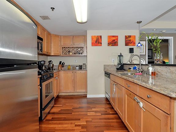 Beautiful 2 Bed, 2 Full Bath Condo in Full Service Luxury Building with 24 Hr Doorman/Concierge Unit features, kitchen with lots of cabinet space, d/w, s/s appliances, granite counters, breakfast bar and h/w floors. W/D conveniently in unit. Living room with lots of sunlight. Master bedroom with ensuite bath. Large 2nd bedroom. Enjoy private terrace. Bldg offers: 24hr concierge, courtyard, elevator, free shuttle to/from PATH, steps to NYC buses, LightRail and more! Onsite 25,000 sq ft gym & garage parking offered for additional fee