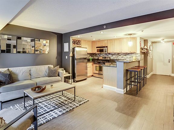 Yes you can have it all! Sky Club living with 24 hour concierge. This magnificently upgraded 1 bedroom home has the luxury and comforts that you deserve. Open style kitchen that overlooks your living area features granite counters and breakfast bar, custom backsplash, custom cabinets and stainless steel appliances. Bedroom easily fits king size bed. Floors have been upgraded to a hard wood looking tile and the bathroom has been upgraded to walk in shower plus newer vanity and floors. Come home and relax on your private balcony. Other great features include central air, in home washer dryer, upgraded doors and good closet space. Commuting could not get any easier....Sky Club has a private shuttle to the path, ferry and bus or the light rail is 1 block away. 8 story parking garage and 25,000 SqFt gym with indoor pool are both available for an extra fee.
