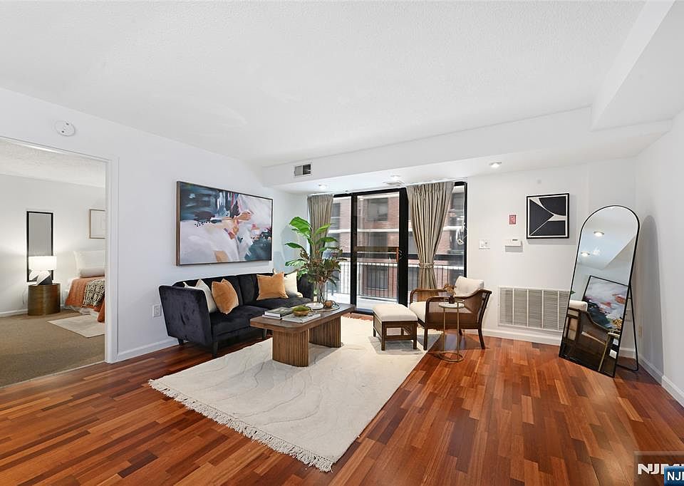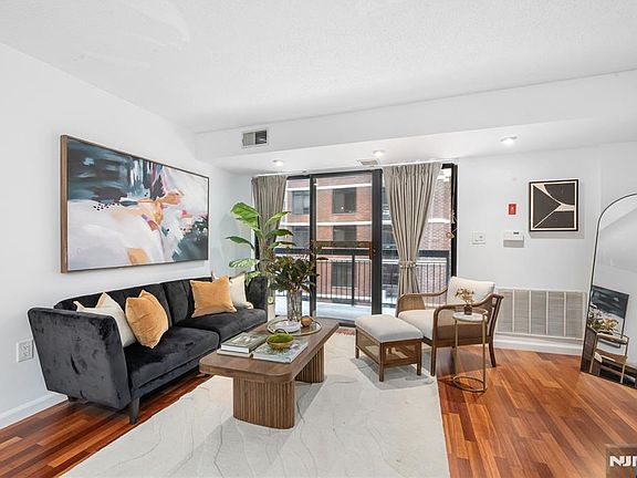 Welcome to The Sky Club! This spacious 2-bedroom, 2-bath residence offers a desirable butterfly layout, with large bedrooms positioned on opposite sides of the home for maximum privacy. The serene primary suite features oversized windows, two generous closets with built-in organizers, and a private en-suite bath, while the second bedroom is equally spacious with excellent closet storage. The open living and dining area is filled with natural light from a wall of windows and sliding glass doors that open to your own private balcony. A modern kitchen with granite countertops, stainless steel appliances, ample cabinetry, and a breakfast bar makes entertaining and everyday living effortless. Additional conveniences include central HVAC and a full-size, in-unit washer/dryer. The Sky Club is a premier full-service elevator building with 24-hour concierge, complimentary shuttle to the PATH and Ferry, and bike storage and rental storage options. Residents also enjoy on-site garage parking and access to the 25,000 sq. ft. Sky Club Fitness & Spa with indoor pool (both available for an additional fee). Ideally located across from the 2nd Street Light Rail and just minutes from Hoboken's vibrant dining, parks, and waterfront, this home offers the perfect balance of comfort and convenience. Don't miss the opportunity to own this spacious, move-in ready home with every convenience right at your doorstep!