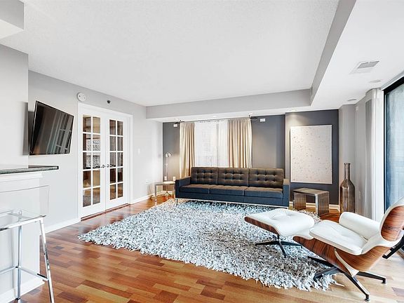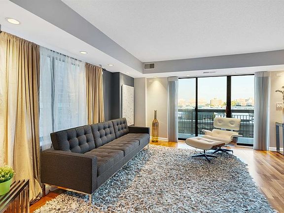Yes, you can indeed 'have it all'... A full service 24 hour doorman building, iconic New York City views, and private outdoor space to revel in the magnificence of it all. Residence 7E at The Sky Club is a 1265 sq ft 2 bedroom, 2 bathroom corner unit that is enriched by an an impressive array of storage throughout, central air, an in-unit washer/dryer, and a 15 foot wide private terrace with panoramic views of New York City that perfectly frame the Empire State Building and the Freedom Tower. Centered around an open living and dining area framed by oversized windows and an open kitchen with granite counters, Whirlpool appliances and a breakfast bar, this is a home that allows for uncompromised, easy living day-to-day and effortless indoor/outdoor entertaining of family and friends. For both privacy and functionality, bedrooms in Residence 7E are located on opposite ends. The master suite features views of New York City, two closets, and a well-appointed private bathroom with a tub. The guest bedroom has French doors and en-suite access to an oversized bathroom with a glass enclosed walk-in shower. The Sky Club is a well-regarded full service elevator building in downtown Hoboken that offers incredible access to all forms of transportation and everything that makes Hoboken and New York City so special. In addition to a 24 hour doorman and a caring, skilled service staff, The Sky Club offers residents a free shuttle to and from Hoboken Terminal (PATH, Ferry, NJ Transit), an on-site organic market, an on-site restaurant and is one block to the 2nd Street Light Rail Station. Garage parking and access to a 25,000 sq ft Fitness Center (which includes a pool) are both available for an additional monthly fee.