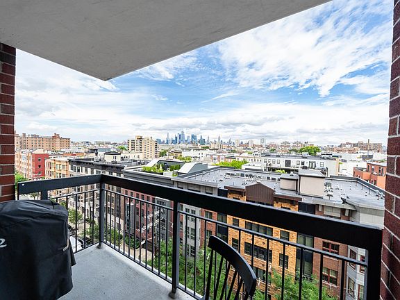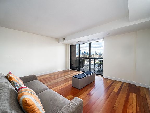 STUNNING NYC skyline views from this spacious 2 bedroom / 2 bathroom home with private terrace! Home features a nicely equipped and updated kitchen with stainless steel appliance package, an abundance of cabinet storage and granite counters and breakfast bar. Living / dining area features a generous layout with sliders leading to a private terrace offering the most amazing views of the Manhattan Skyline. Primary bedroom is large, has an en-suite bath and generous closet space. Guest bathroom is fully renovated offering a spa-like setting. Second bedroom is large with enough space for king size furniture. Unit features gorgeous wide plank hardwood floors, recessed lighting, central A/C, lots of storage and washer/dryer in-unit. Building features a doorman, shuttle to the PATH and parking for an additional fee.