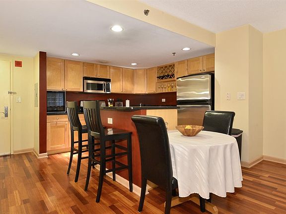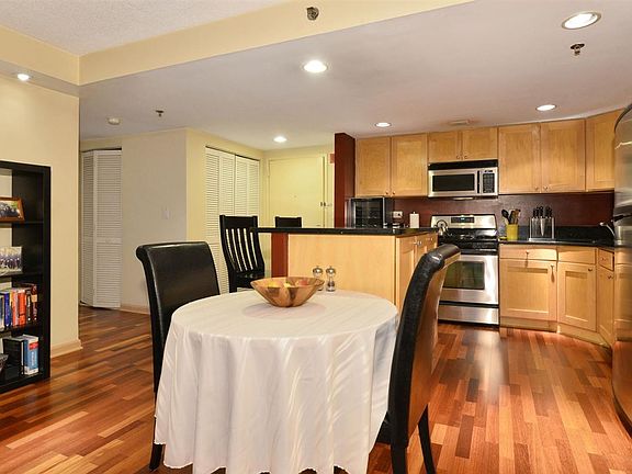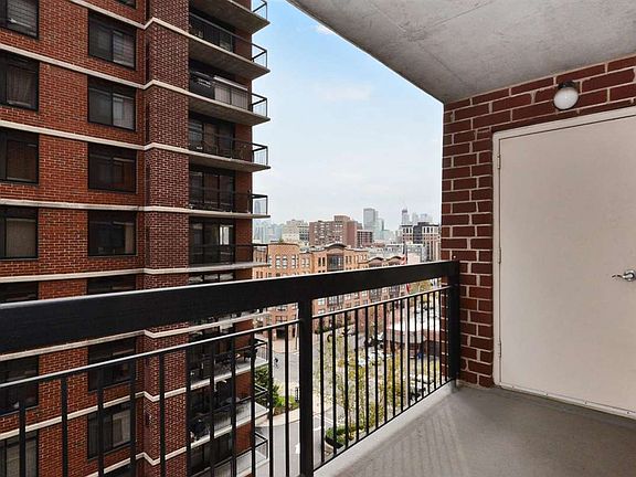 Beautiful 898 SF 1BR/1 bath in luxury Sky Club building! Open kitchen feat.: SS appliances, d/w, granite counter & island w/abundant cabinet space. Large living area w/recess lighting & HWFs thru-out. Spacious BR & new W/D. Enjoy NYC views & your private balcony. Sky Club offers 24 hr doorman/concierge, courtyard, elevator, free shuttle to/from PATH, steps to NYC buses, & light rail, parks, daycares, shops and more. Garage parking and 26,000 gym w/pool for additional fee.