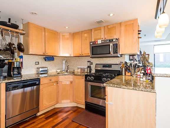 Spectacular 3 bedroom and 2 bathroom home with NYC views - a rare find in this price range! Located in a full service doorman building this corner unit home is flooded with southern light, and boasts beautiful hardwood floors, central air, granite counters, in-unit washer/dryer, and a large private terrace! Enjoy area amenities including the newly installed SW Park and the on-site organic marketplace. Parking and gym in building are available for an additional fee. Free shuttle to PATH Train and just steps to the Light Rail.