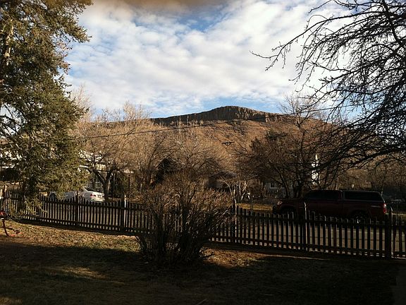 A brief 5 minutes walk away from downtown Golden this house is a beautiful historic (updated) brick home, with all appliances, a wood-fenced yard and a patio in the back. The property has a mature landscape with a number of large trees and shrubs that create a nice sense of privacy on an already very quiet street. There is a detached 2- car garage and driveway. The house is a very bright and sunny home (especially in the winter) with a efficient radiant heat system and very new double pane windows, south facing sunroom, plenty of storage space, crown molding, very efficient gas stove and clothing dryer. Really nice kitchen with special pull out shelving in lower cabinets for easy storage. Very nice views of the western mountains and north table mountain. Pets will be decided on a case by case basis, but are generally welcome. Ceiling fans, great overhead lighting, and cool privacy shades of windows with a built-in security latch for securing the windows even when they are cracked open. The property is professionally cleaned inside and out before move-in, and there are plans to do some bi-annual (Fall and Spring) maintenance and improvements to the exterior of the house/garage and landscape over the next few months. Get in touch to check it out! Owner pays trash, water, and sewer. One time non-refundable pet deposits for cats and dogs are required if pet is approved. Landscape can either be managed by the tenant, or for a fee by the owner.