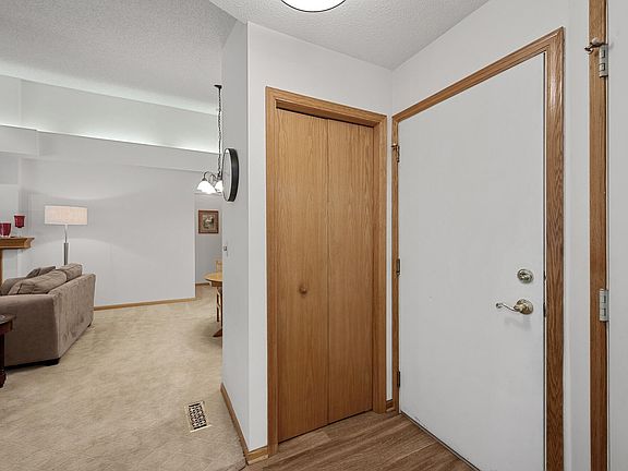 Immaculate single level townhome with no interior stairs. This end unit townhome feels very private with pond views and mature trees. Convenient south Coon Rapids location. Close to Springbrook Nature Center, shopping, restaurants, and bus line. Many recent updates including Cambria counters, tile backsplash, and new refrigerator in the kitchen. Hot water heater replaced within the last year. A/C and furnace replaced in 2015. Both bathrooms have been remodeled. Pull down storage in laundry area.