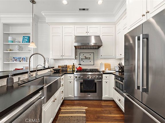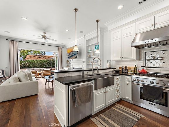 This exquisite home, reminiscent of new construction, presents a captivating blend of modern elegance and coastal charm in the heart of the coveted Flower Streets in Corona del Mar, a stunning front, corner-lot home with a rare two car garage exudes timeless elegance and sophistication. Situated on the ocean side of PCH, consists of 3 bedrooms, all on the second level, and 3.5 baths, with generous living spaces, bright white walls, loft ceilings, and rich hardwood floors, creating inviting indoor/outdoor living spaces. The living room showcases custom built-ins around a cozy fireplace, and the gourmet kitchen features top-notch stainless steel appliances. Upstairs, three generous bedrooms await, each with an en suite bathroom. The primary suite has a private balcony and a marble fireplace. Amenities include a spacious laundry room and plenty of storage space. Located in the heart of Corona del Mar, this home is moments away from upscale boutiques, diverse dining options, and the pristine beaches that define this coastal haven. Whether you seek relaxation on the sands of Little Corona Beach or an exploration of the vibrant local scene, this residence offers the ideal location.
